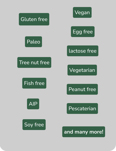 Choose diets, allergies or intolerant ingredients