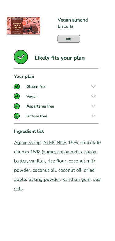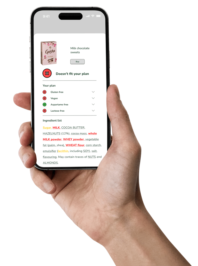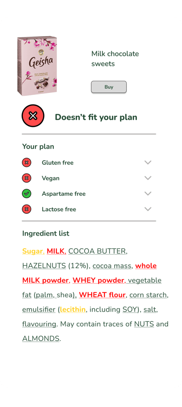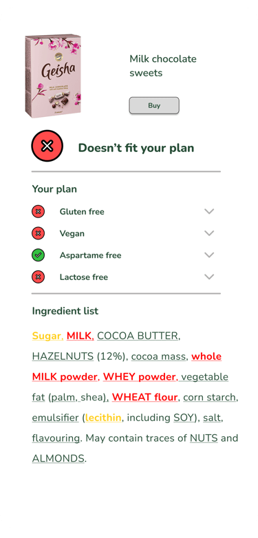 Get an instant answer whether it suits your diet